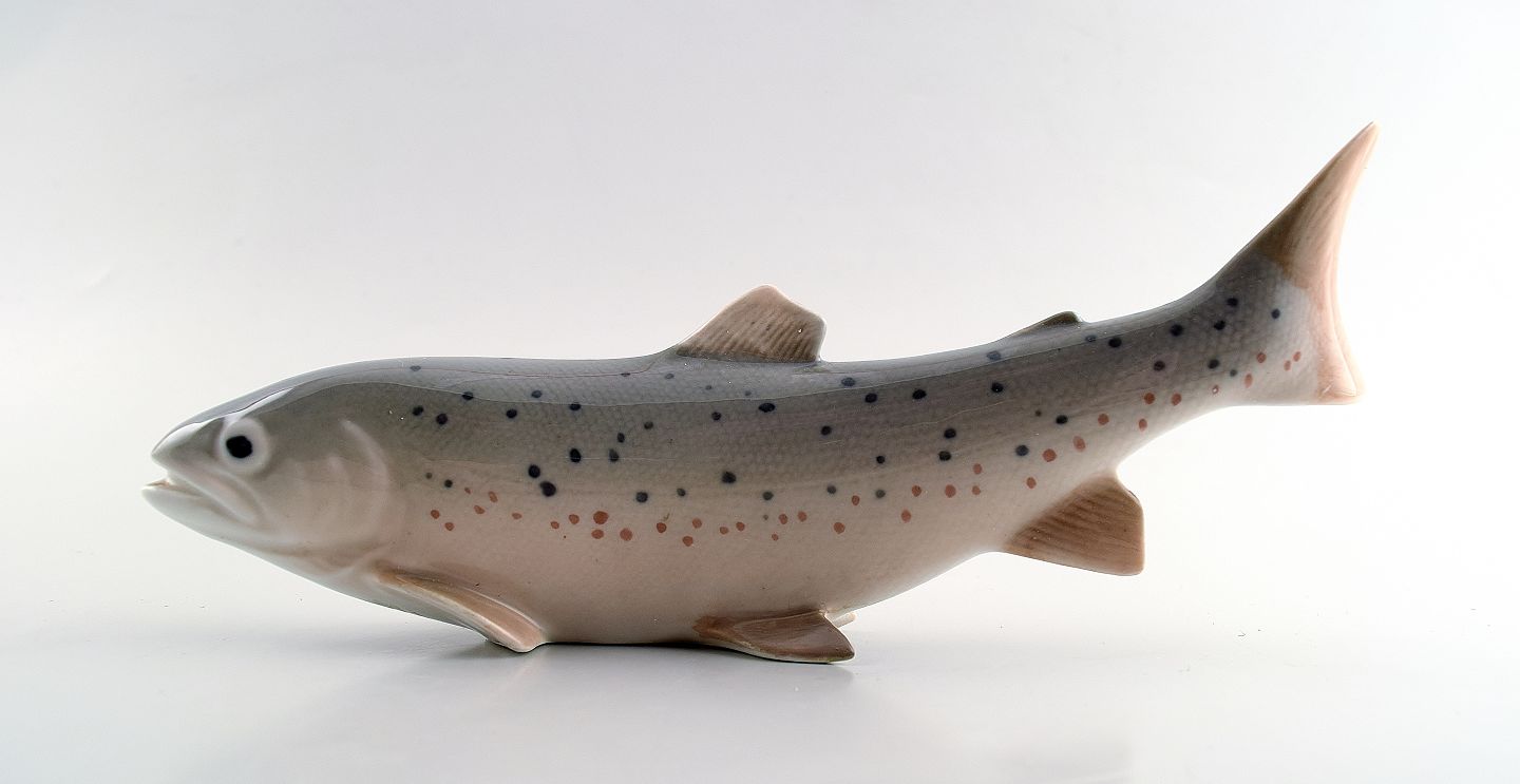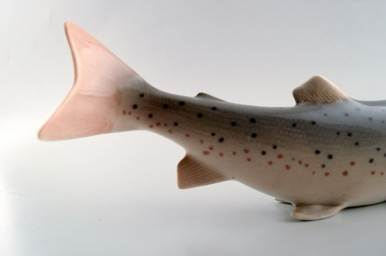 Royal Copenhagen trout, fish figure model number 2676. Perfect condition, 4th factory quality. Early stamp. 21 cm. long.
