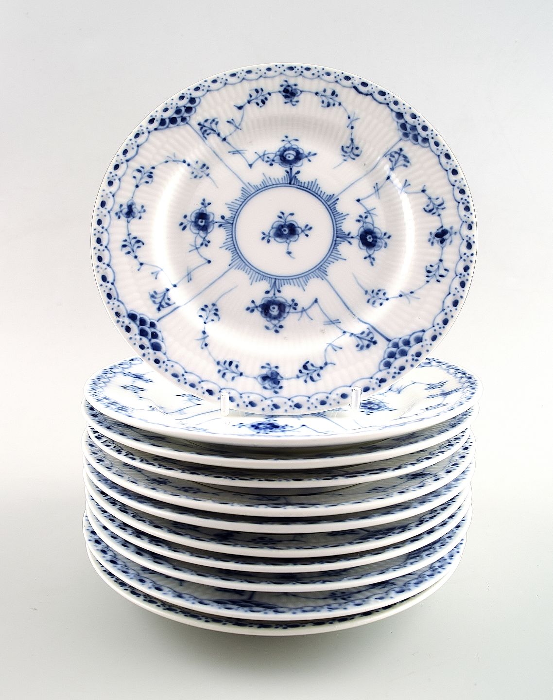 Royal Copenhagen. Royal porcelain Blue Fluted half lace, 3 plates. No. 1/574. Diameter. 17 cm. 1st. factory quality. In perfect condition.