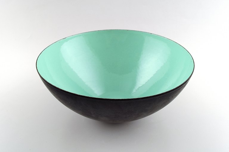 Sjælden og stor Krenitskål af Herbert Krenchel. Sort metal og mintgrøn emalje. 1970'erne. I perfekt stand. Måler : 25 x 13 cm. Stemplet : Krenit Denmark