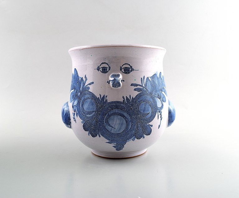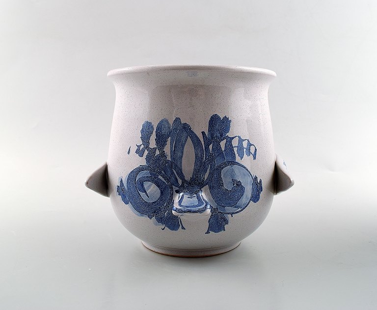 A pair of Wiinblad unique ceramics flowerpots, blue glaze. Measures: 16.5 cm. x 15 cm. Model number V.67. Dated 1975 and 1973. In perfect condition.