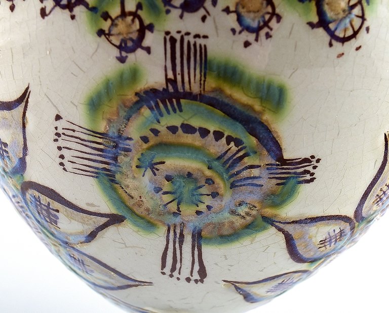 Aluminia hanging flower pot, decorated with flowers. Number 418/2986. Approximately 1930s. In good condition. Measures 17 x 14 cm.