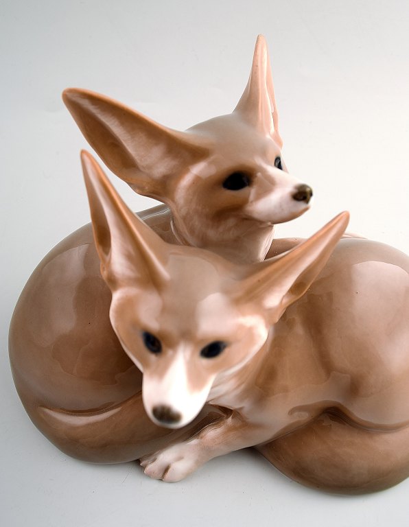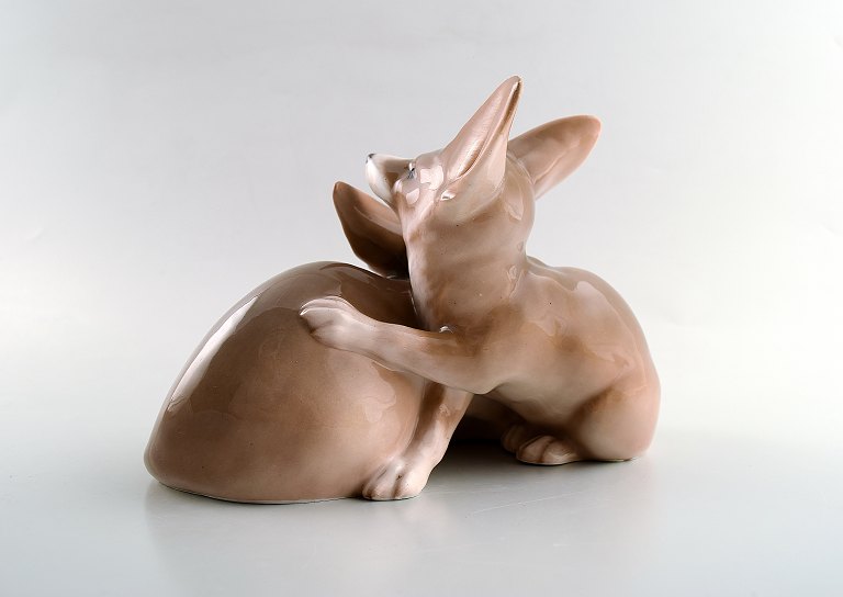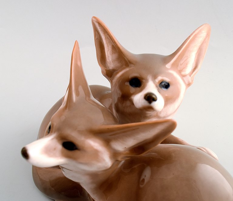 Sjælden Royal Copenhagen art nouveau figur nummer 319. Christian Thomsen 1901, par ørkenræve. 12 x 17 cm. I god stand, 1. sortering.