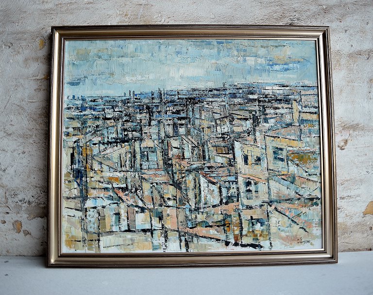 Olle Claesson, Swedish artist. Oil on canvas. An urban view from Marseille. 1960s. Measures (ex. the frame): 64 x 53 x cm. The frame measures 3.5 cm. In perfect condition.