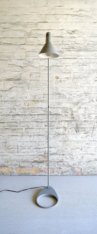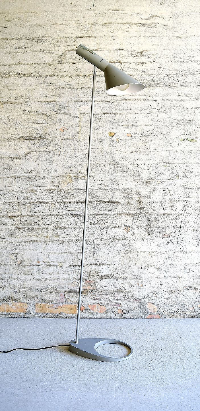 Arne Jacobsen: b. Copenhagen 1902, d. s.p. 1971. "AJ". Grey lacquered metal floor lamp. Adjustable shade. Manufactured by Louis Poulsen. H. 130 cm. Signs of use including marks and minor scratches.