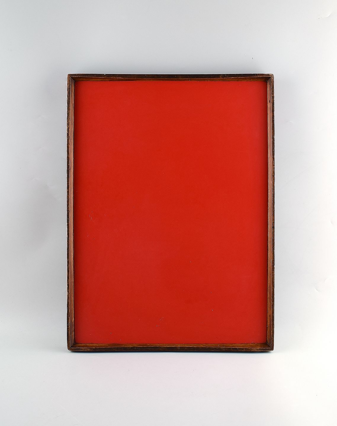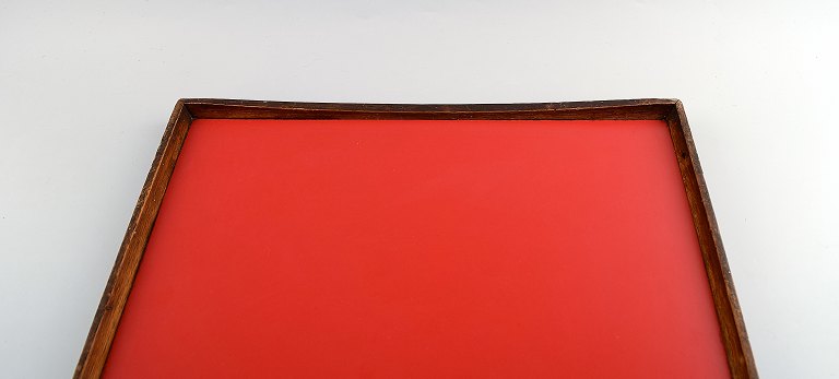 Finn Juhl: Reversible tray of teak with red and black melamine. Produced by Torben Orskov. 1960s. Danish design. Length 51 cm. Width. 38 cm. In very good condition.