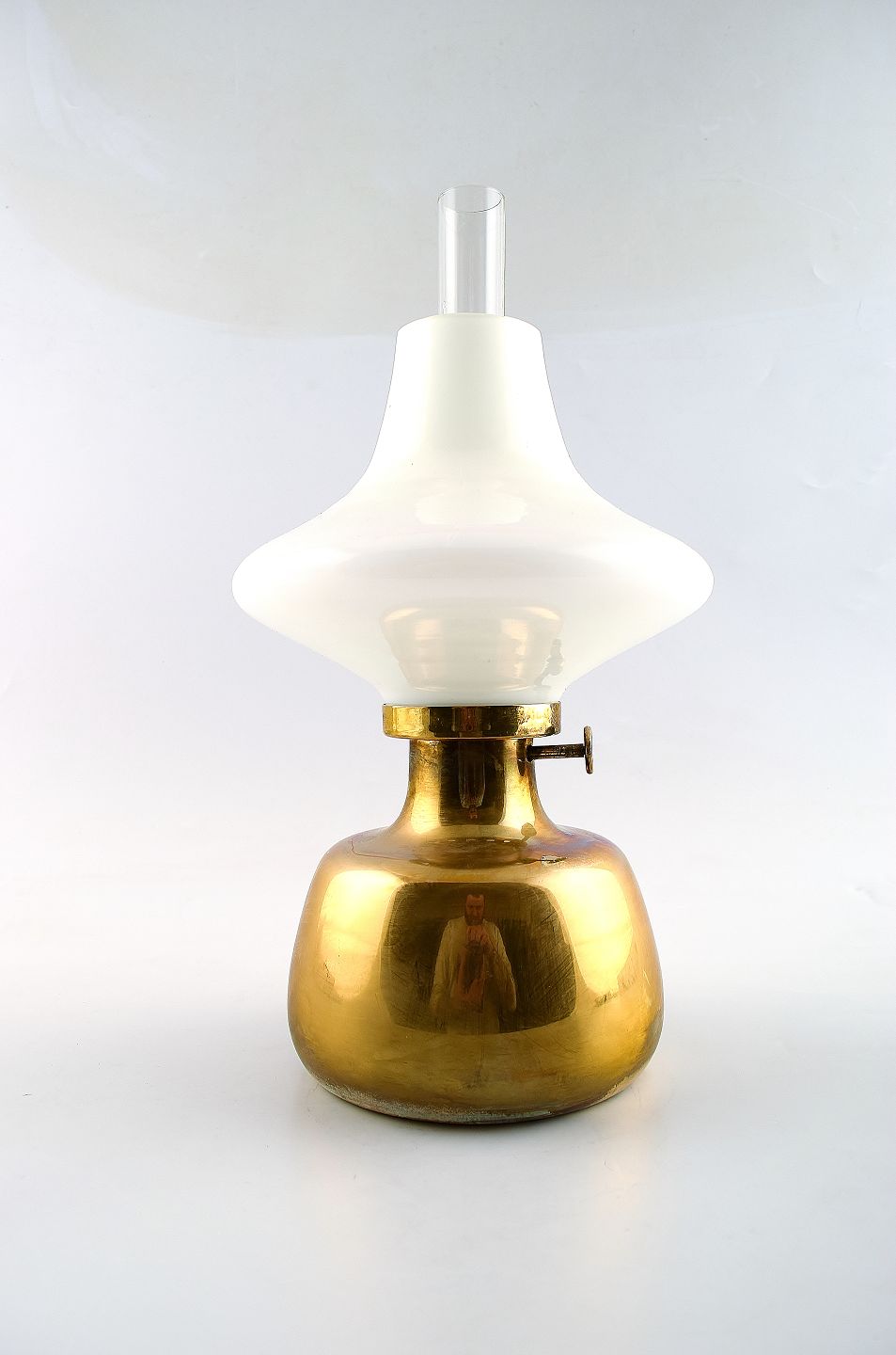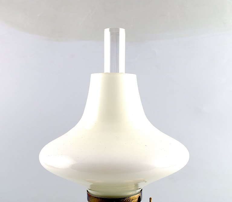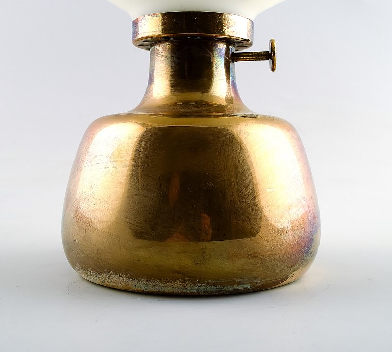Henning Koppel (1918-81) for Louis Poulsen, Petronella oil lamp in brass with shade of opal glass. In fine condition. Measures 31 cm.