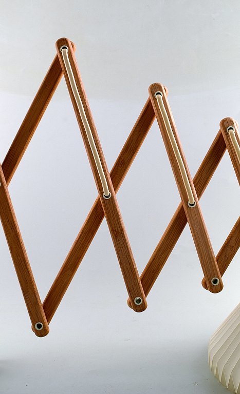 Erik Hansen, Tage Klint, a.o.: An oak sax wall lamp with pleated Le Klint shade. Height 32 cm. Total length 82 cm. In good condition.