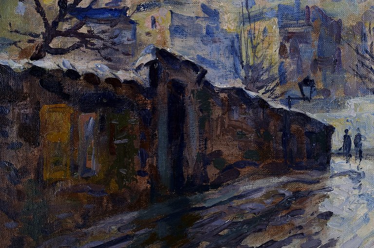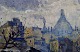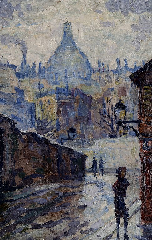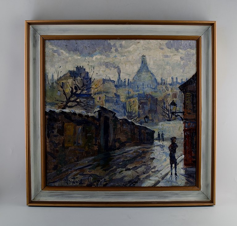 Mogens Vantore (1899-1992). Maleri. Olie på lærred. Paris, Montmartre med Sacré Coeur i baggrunden. Ca. 1940. 54 x 54 cm. Total størrelse inkl. ramme (68 x 68 cm.) Signeret. I perfekt stand.
