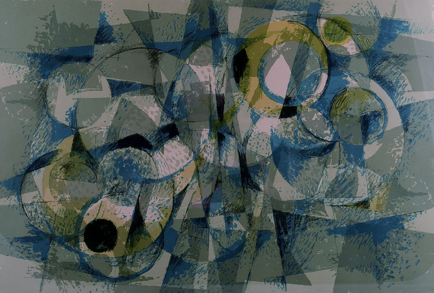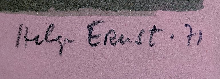 Helge Ernst, Danish artist. Composition. Signed Helge Ernst 71. Lithography. 40 x 60 cm. The frame is 2 cm. wide. In good condition.