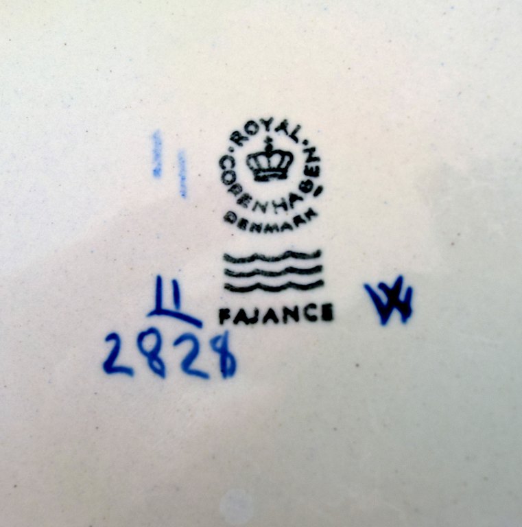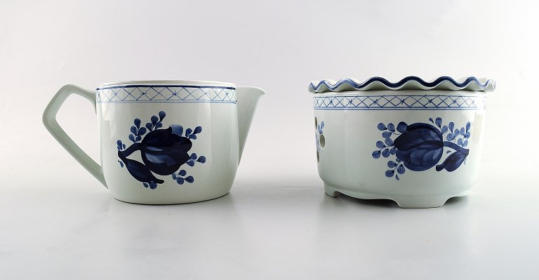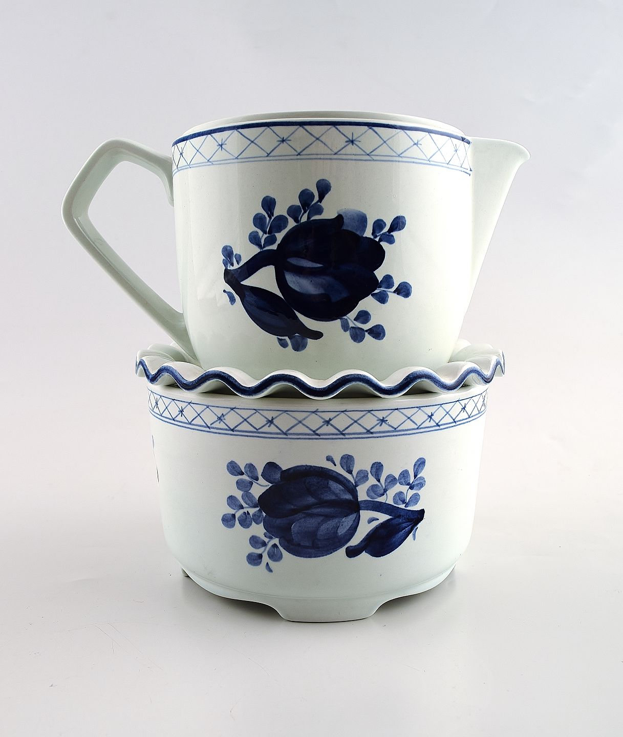 Royal Copenhagen / Aluminia Tranquebar, rare teapot with warmer. Decoration number 11/2828 and 11/1872. 1st. factory quality. Measures a total 19 x 20 cm. Good condition, grate with small hairline.