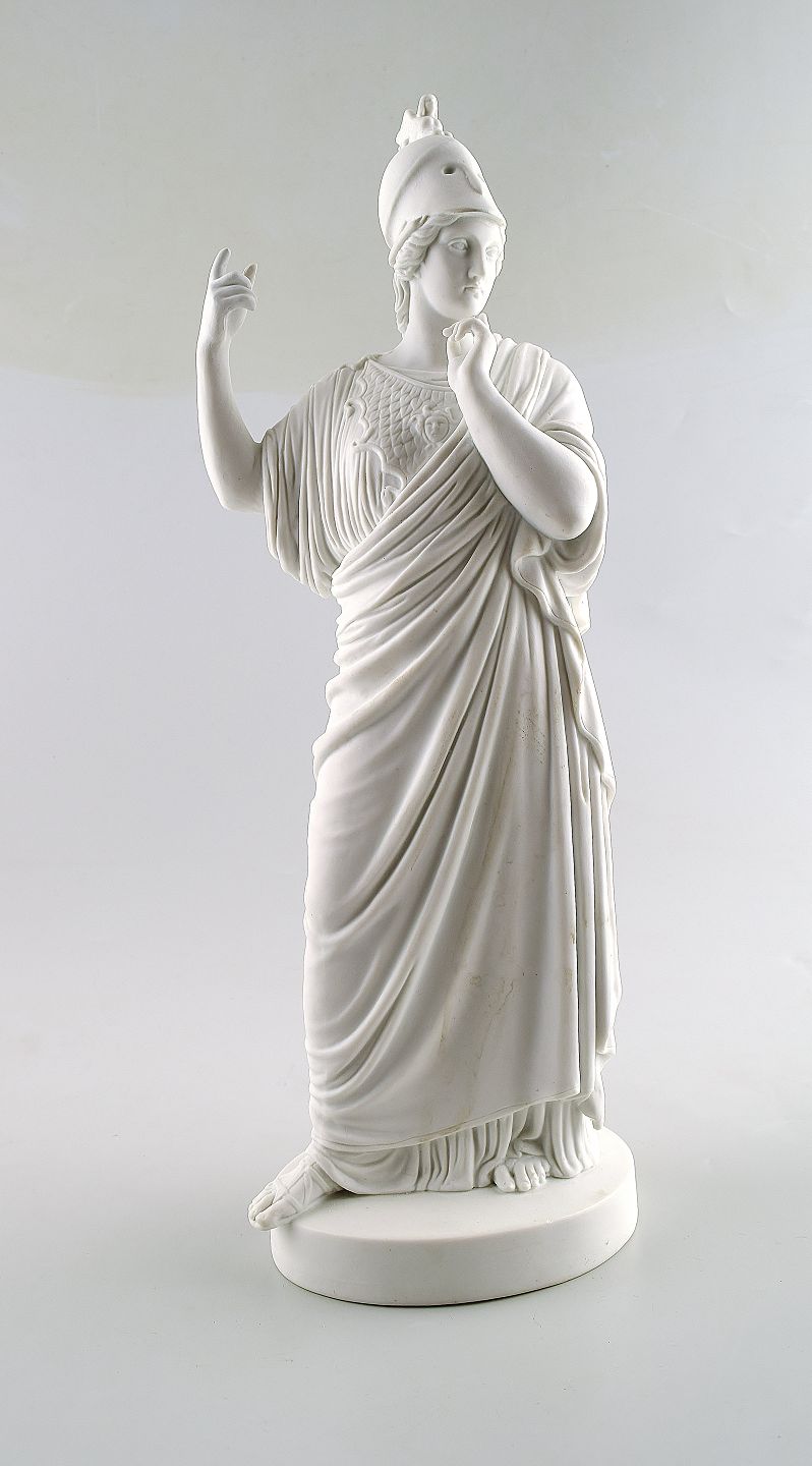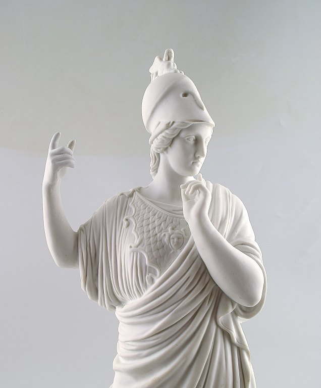 Sjælden stor antik B&G/Bing & Grøndahl Biscuit Athena kvindefigur efter Thorvaldsen. Fremstår i flot stand. Stemplet B&G Eneret. Højde 42 cm.