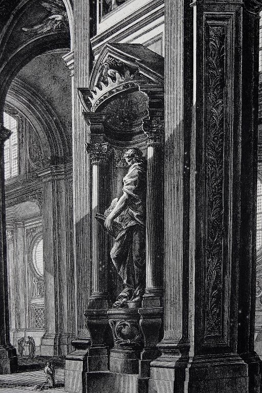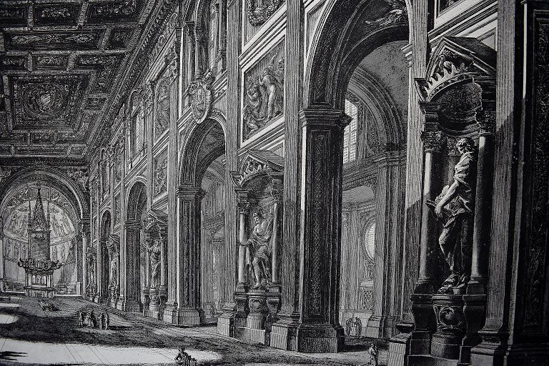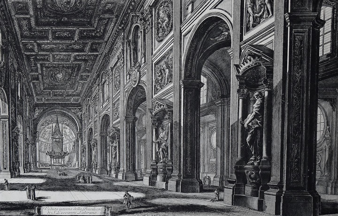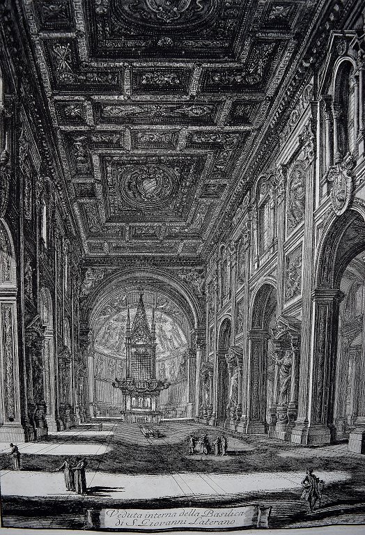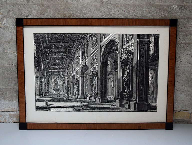 Piranesi. Engraving, Veduta interna della Basilica di S. Giovanni Laterano. Measures (interior diameters) 67 x 43 cm. The frame measures 3.5 cm. 19/20 c. In perfect condition.