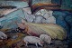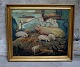 Unknown Scandinavian artist, app. 1920. Oil on board. Pigs Stable. 72 x 60 cm. Total size incl. frame (82 x 70 cm.) Unsigned. On the back "Aug. Berg" Swedish artist. In perfect condition.