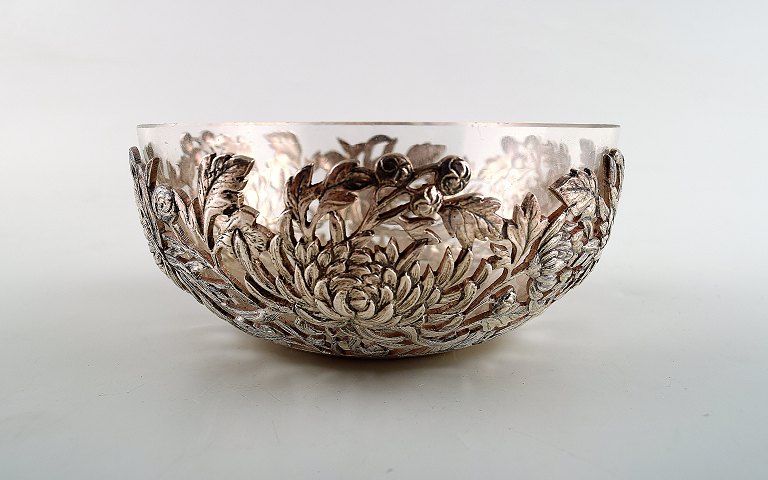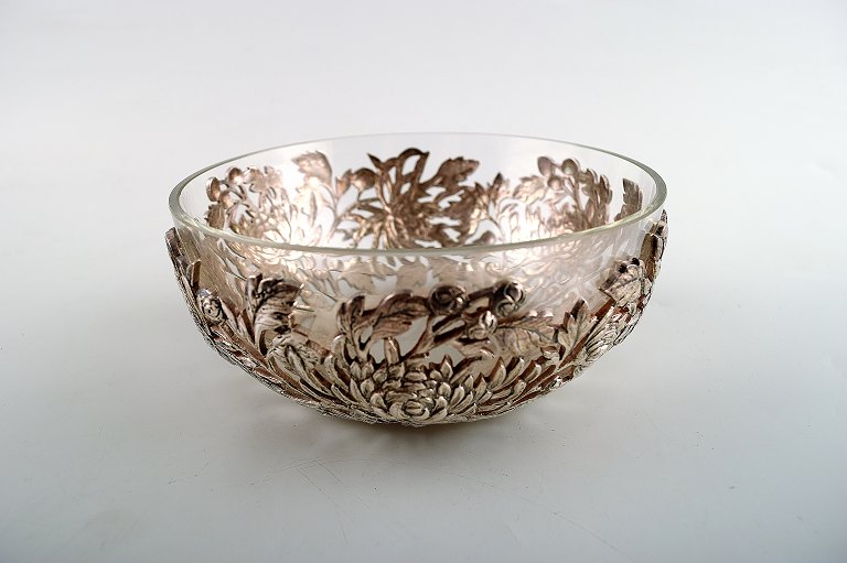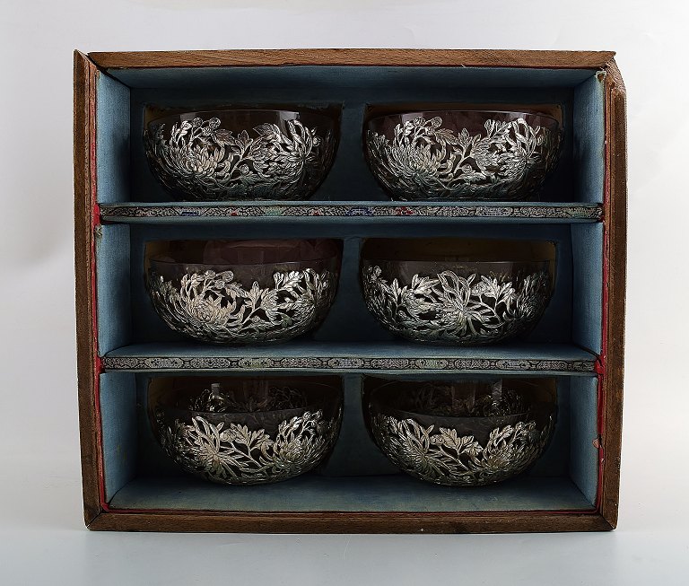 Set of 8 Chinese rinsing bowls of silver with glass inserts,