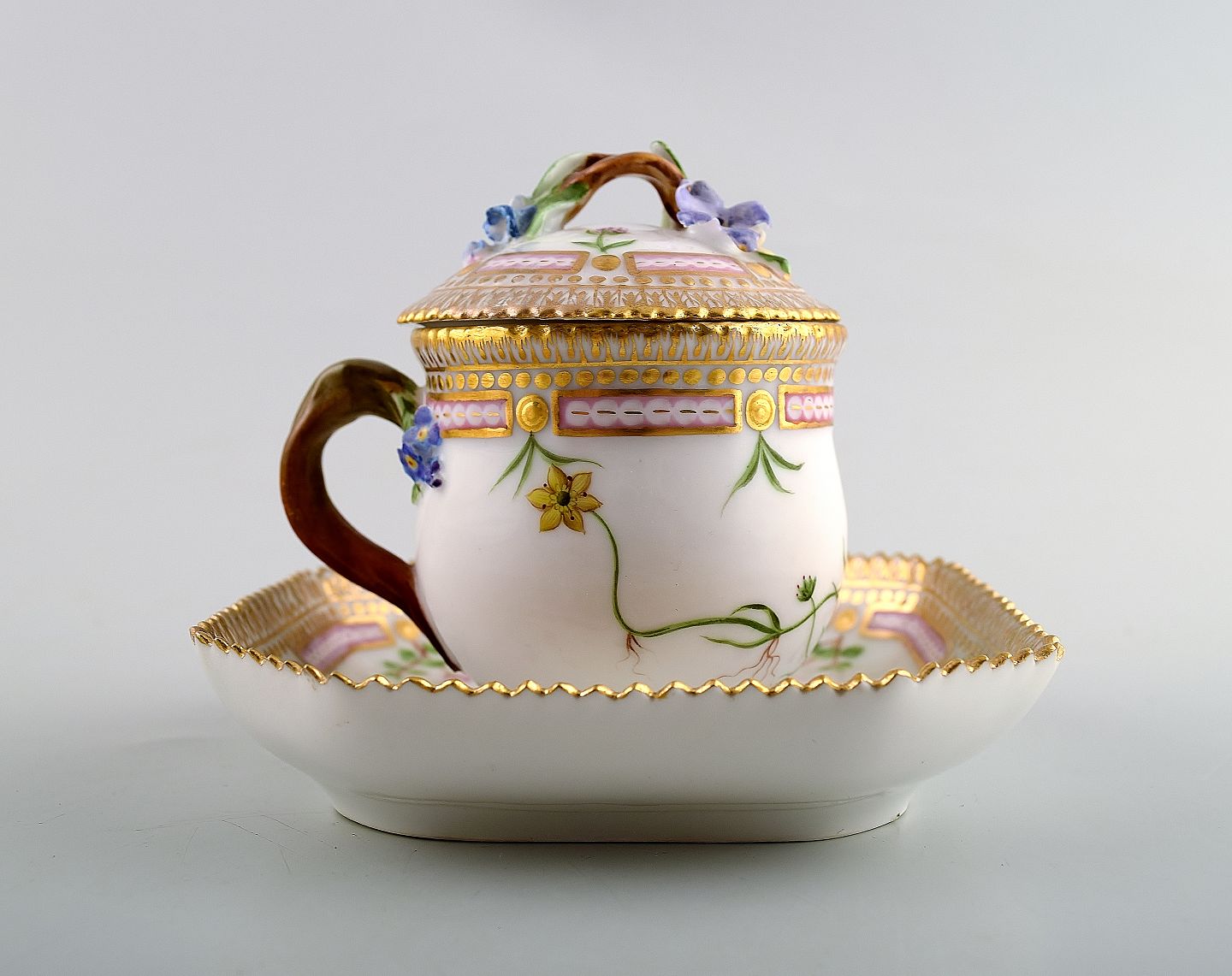 Royal Copenhagen antik Flora Danica cremekop. Latinsk betegnelse : Ranunculus reptans. Ca. 1860-1880. Måler 8 x 9 cm. Underkop : 10 cm. i diameter. 1.sortering, i perfekt stand.