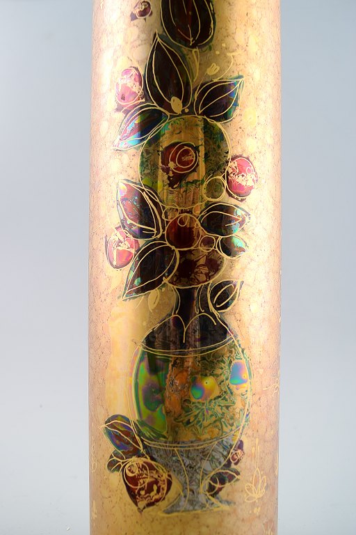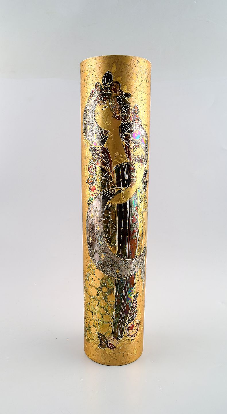 Rosenthal Studio Line, Bjorn Wiinblad large porcelain vase, decorated in gold. In perfect condition. Measures 36 x 8 cm. Marked.