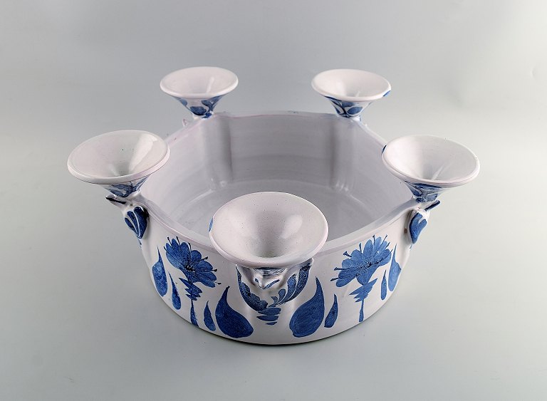 Bjørn Wiinblad, det blå hus, unik keramik lysestage til fem lys. Sjælden. Måler: 14 x 35 cm. Signeret, 1973. I perfekt stand.