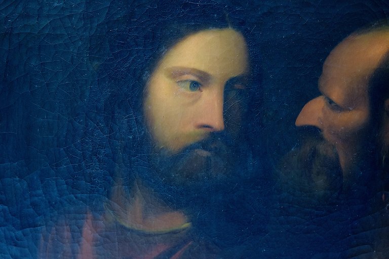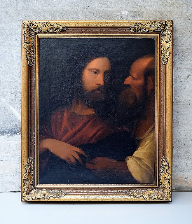 Old master, unknown artist, 19 c. oil on canvas. Unsigned. Biblical motif with Christ. In very good condition. Measures 51 x 41 cm. The frame measures 7 cm.