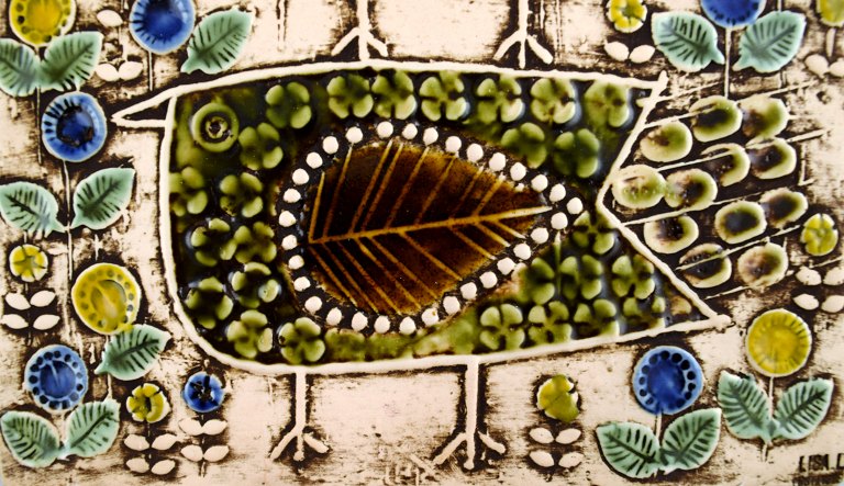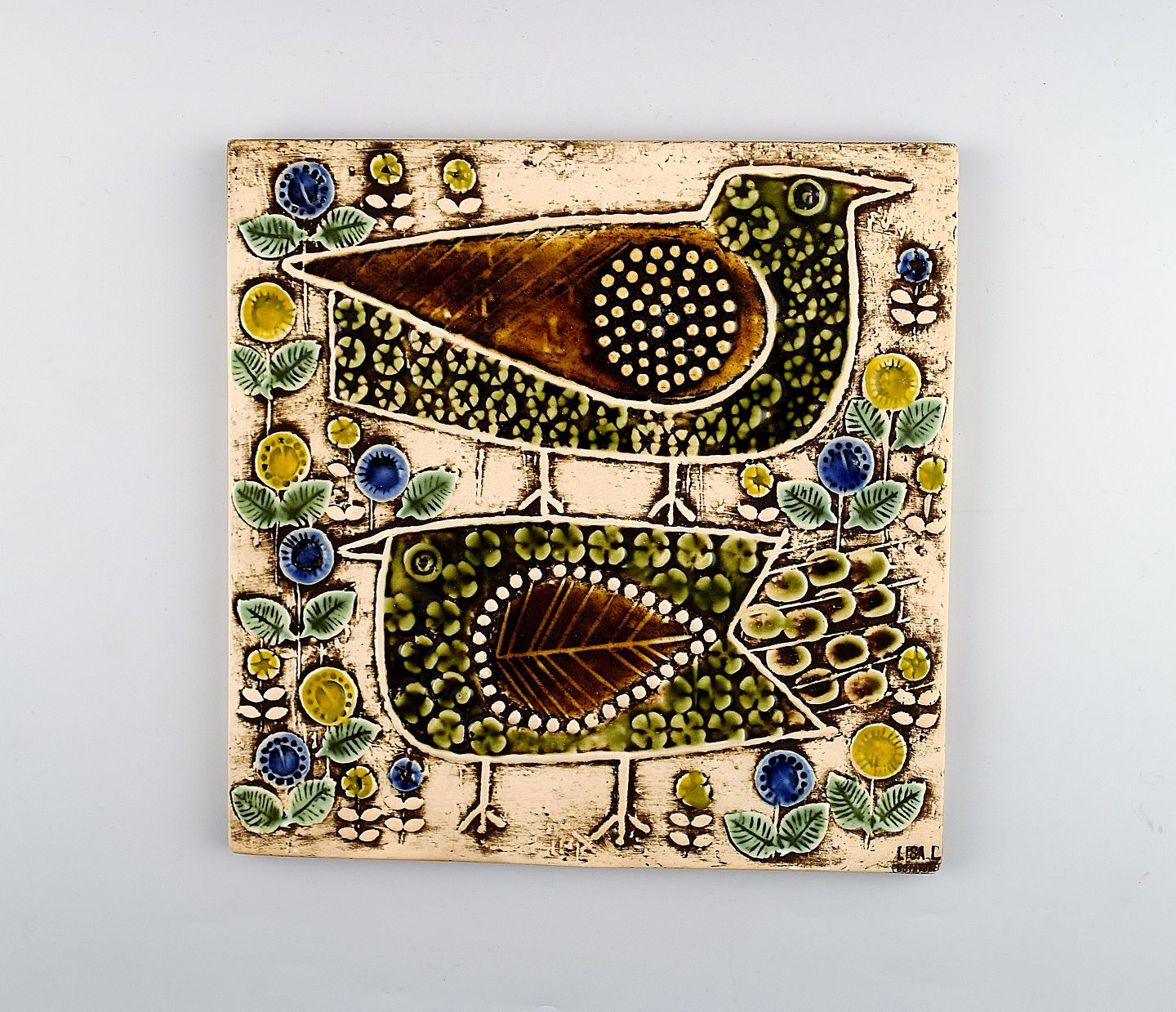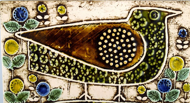 LISA LARSON (1931 -) for Gustavsberg, wall plaque, stoneware, retro. 2 birds from the series UNIQUE 1961. Marked on the back. Perfect condition. Measures 22.5 cm. x 1 cm.