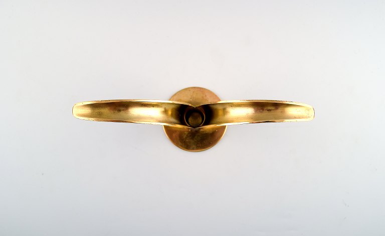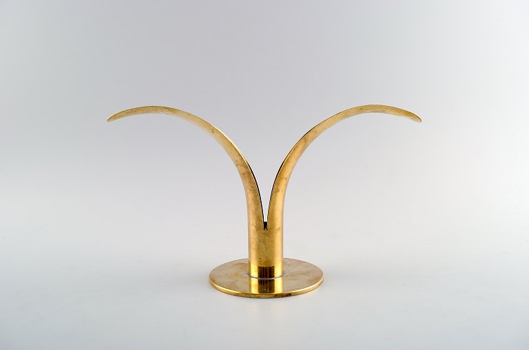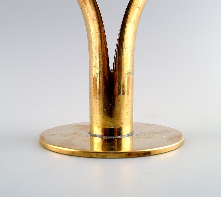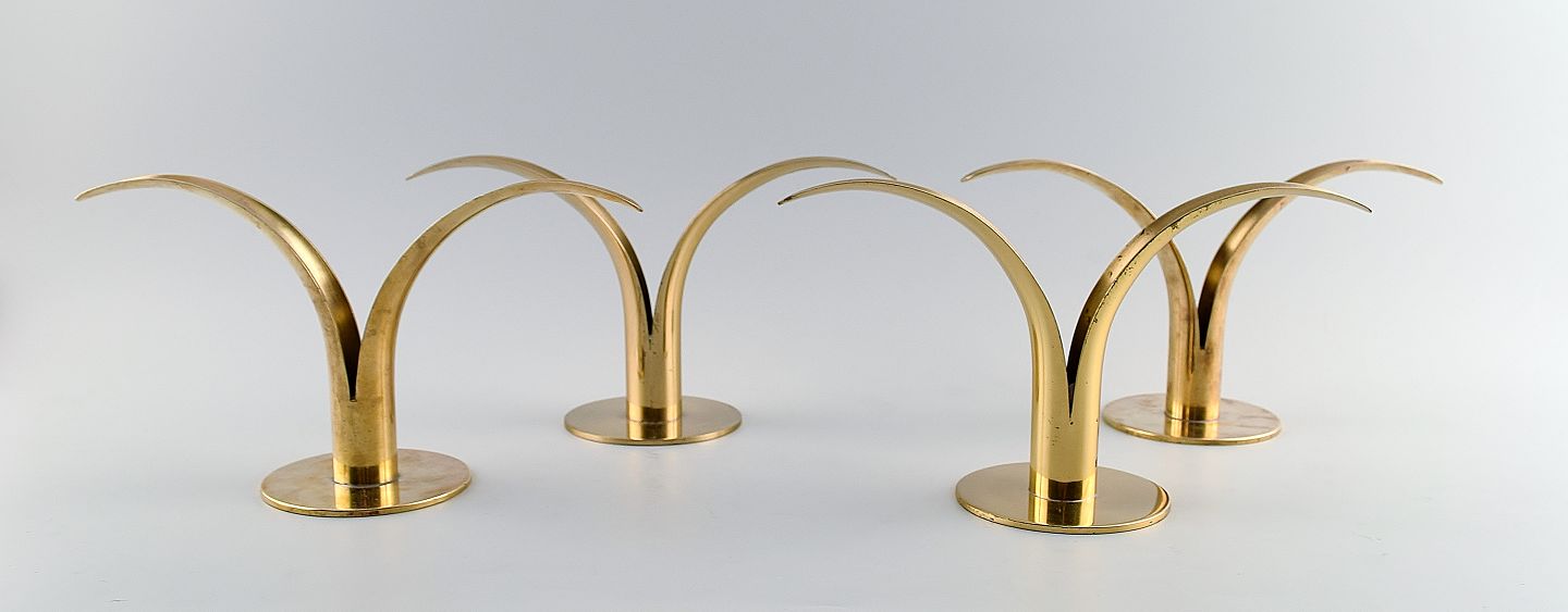 Two pairs of candlesticks in brass, "Liljan" Ivar Alenius Bjork, Ystad metal. 13 cm. height and 22 cm. in diameter. Swedish design classic. Mid 20 c. Good condition, light wear.