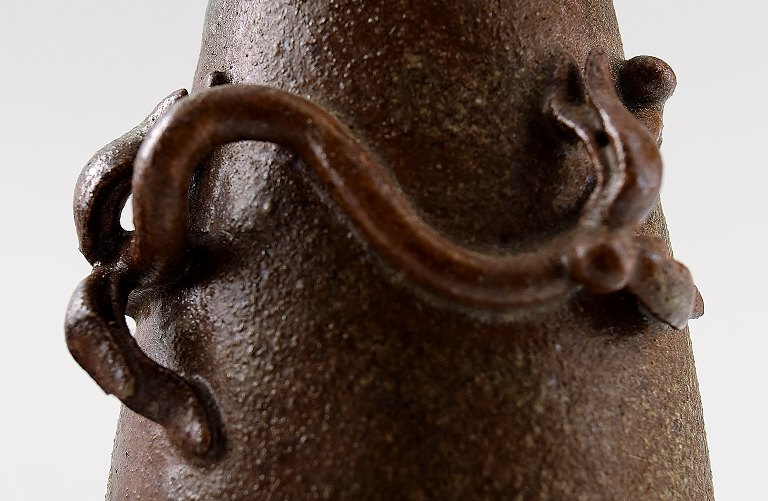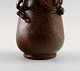 Arne Bang. Pottery vase with foliage. Stamped AB. Number 185. Glaze in shades of brown. In perfect condition. Measures: 9 cm. x 6 cm. Denmark 40s.