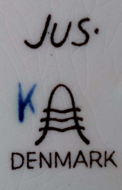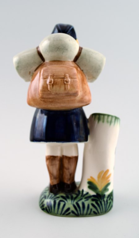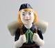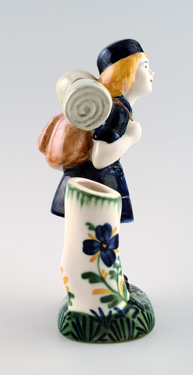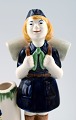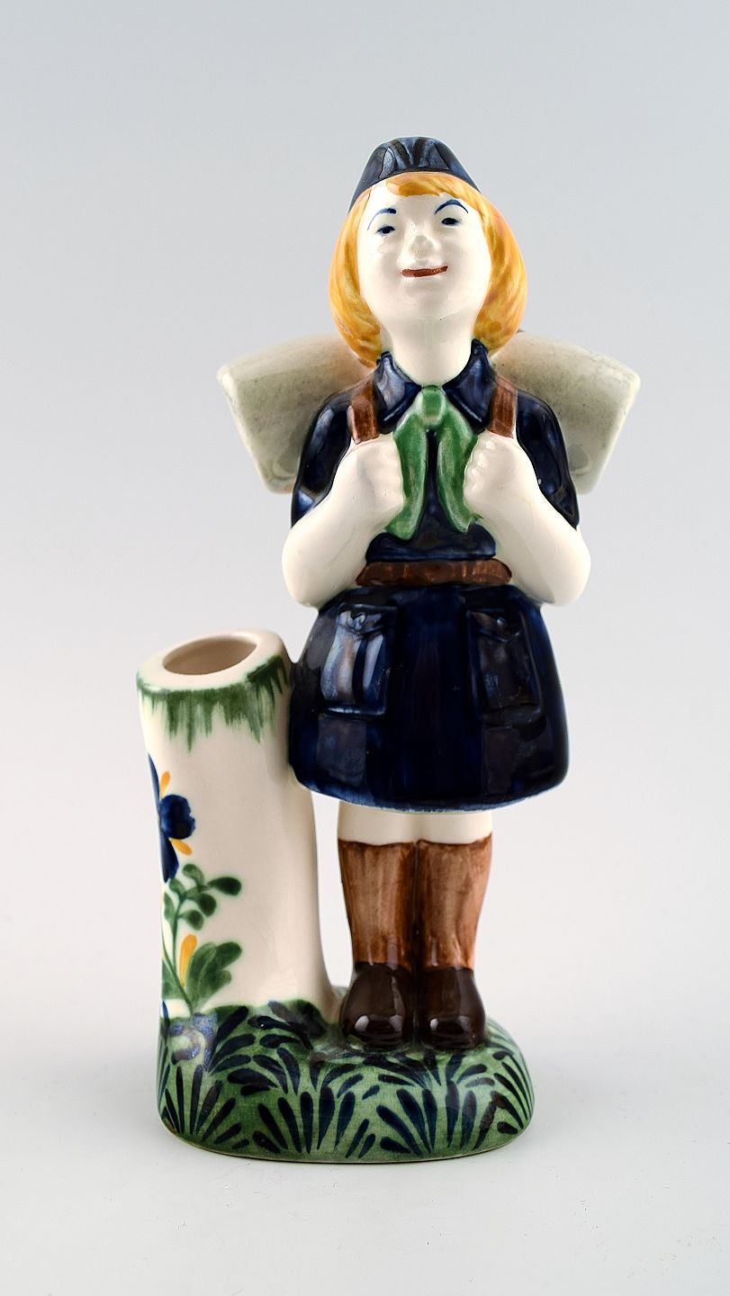 Aluminia. Børnehjælpsfigur - Blå spejderpige. Figur af fajance i form af spejderpige. Fremstillet hos Aluminia i anledning af børnehjælpsdagen. Tegnet af Herluf Jensenius 1965. Højde 17,5 cm. I flot stand.