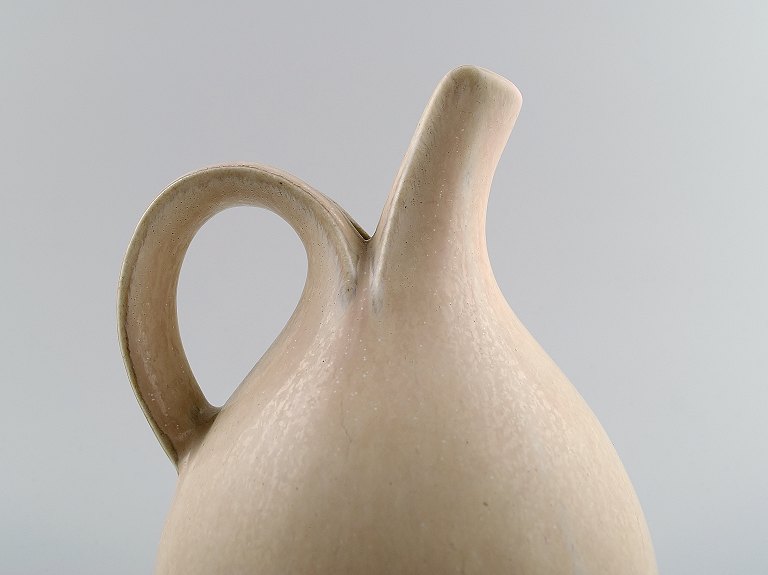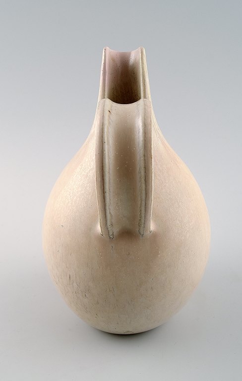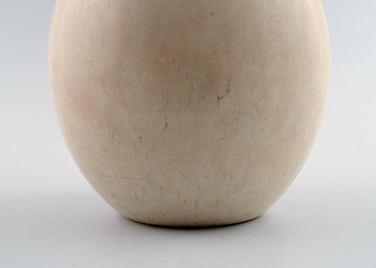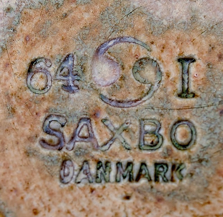 Eva Stæhr-Nielsen, Saxbo: Spaltekande af stentøj. Dekoreret med æggeskalsglasur. Måler 20 cm. x 12 cm. Stemplet. I flot stand.