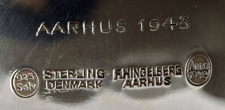 With lid in sterling silver made and stamped by Frantz Hingelberg anno 1942.