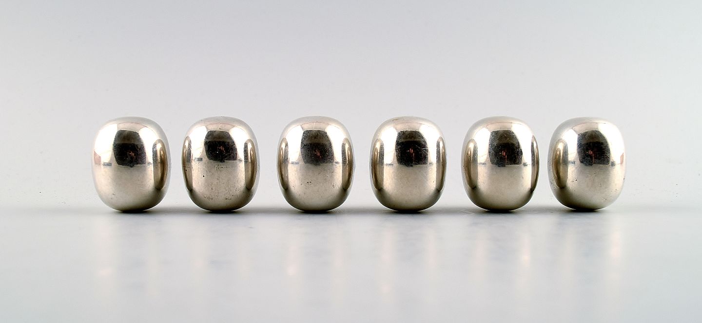 6 Piet Hein super eggs drink coolers made of stainless steel.