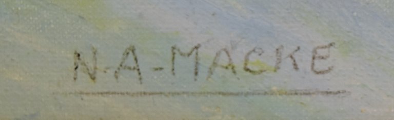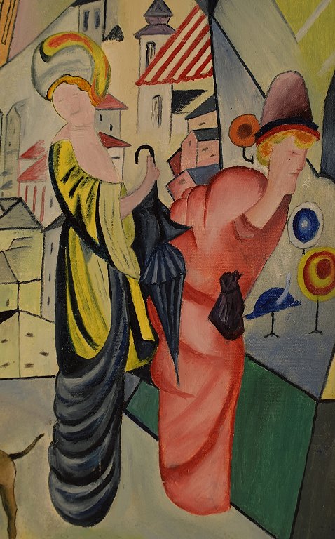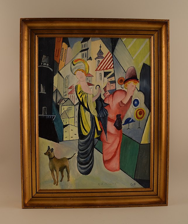 August MACKE (b. 1887, d. 1914) style of. Oil on canvas. People in exterior. Unknown artist. 20 century. In perfect condition. Signed: N. A. Macke Measuring 40 x 30 cm. The frame measures 4 cm.