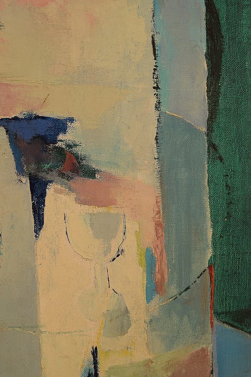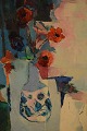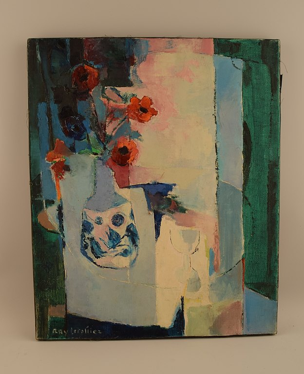 Ray Letellier, French artist "Les Anémones". Still Life with flowers in a vase and a wine glas, oil on canvas. In good condition. Signed, app. 1960s. Measures 48 x 36 cm. Without frame.