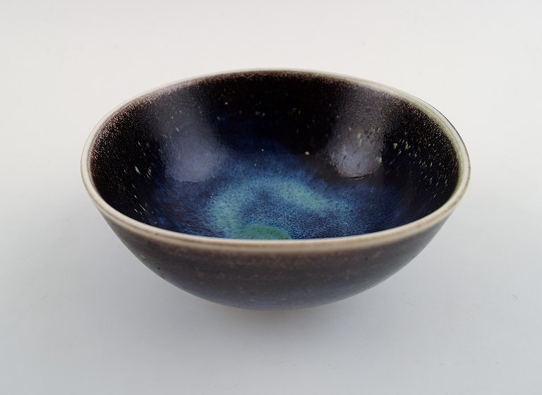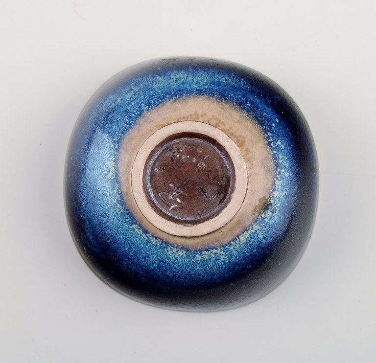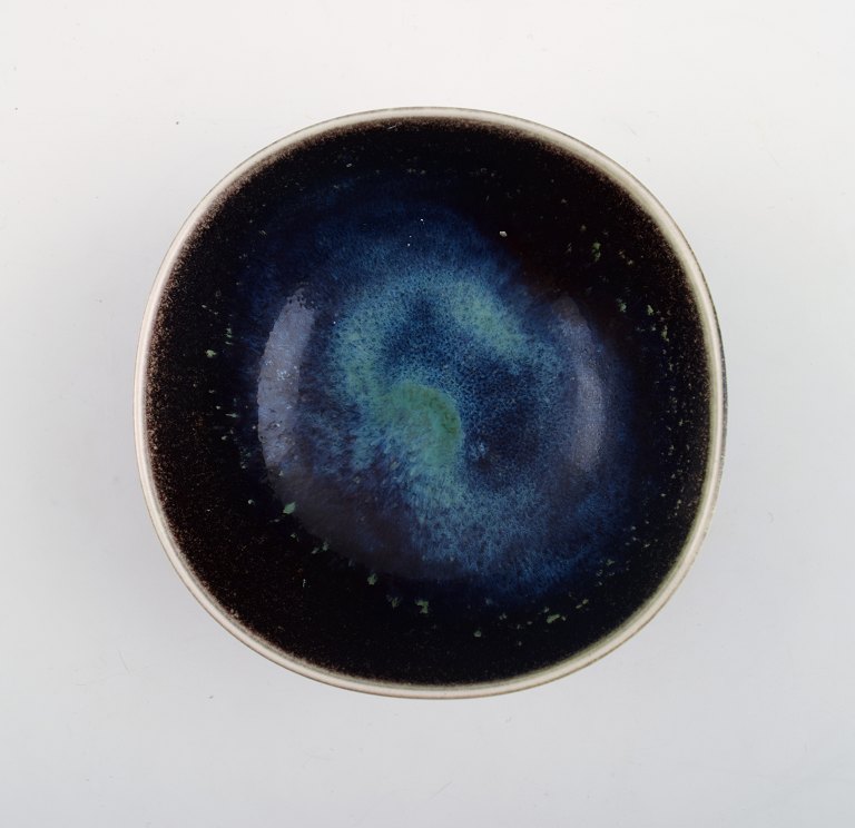 Berndt Friberg (1899-1981), Gustavsberg Studio. Skål, glasur i mørkeblå nuancer. Nattehimmel. Måler: 10 x 5 cm. I perfekt stand.