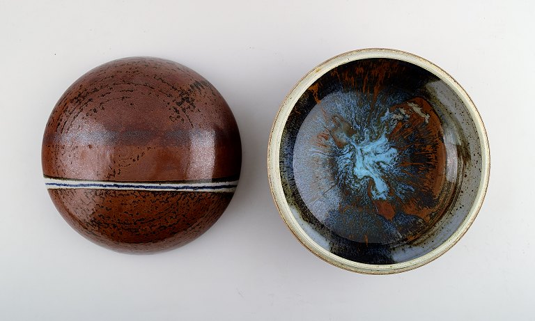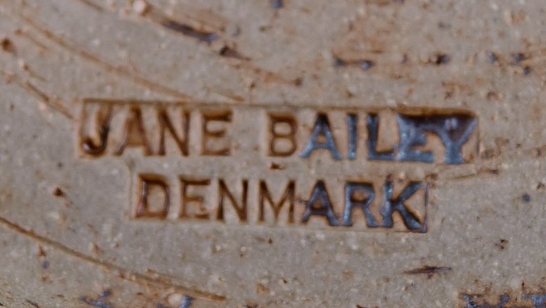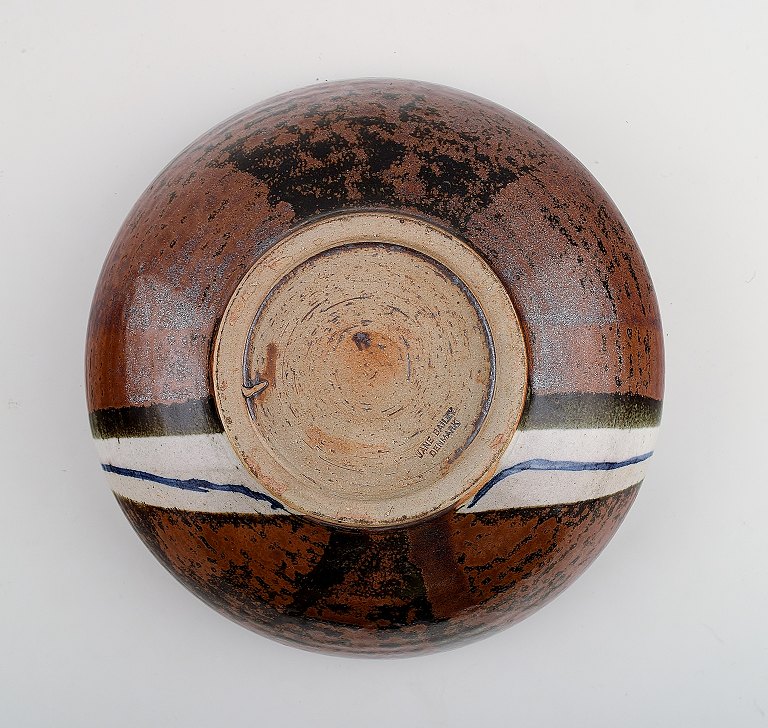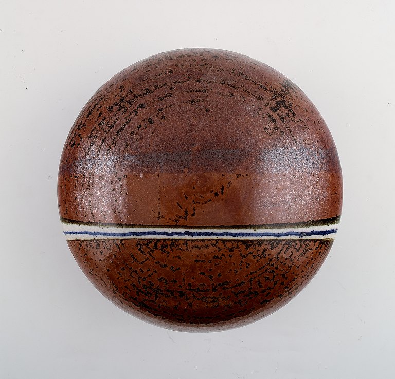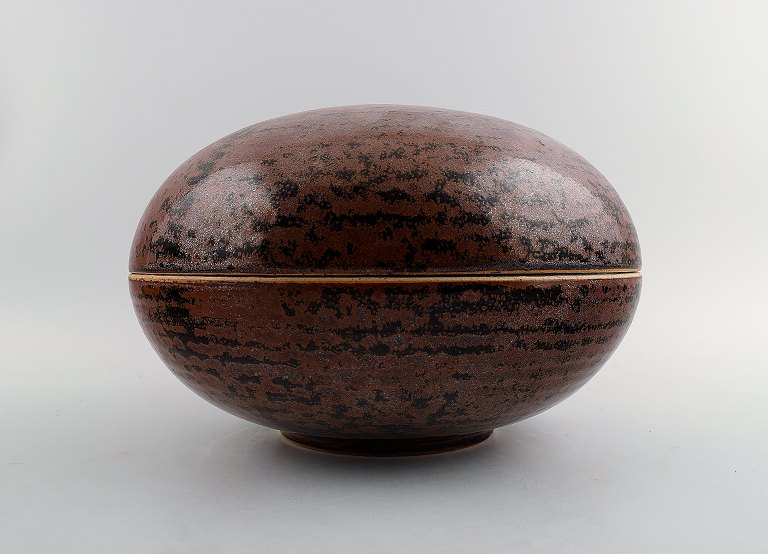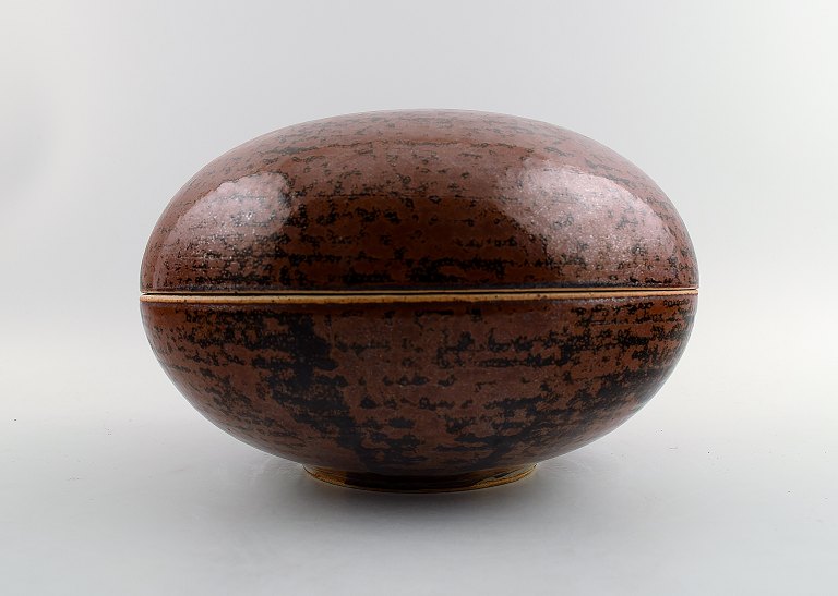 Jane Bailey, large bonbonniere / lidded jar in stoneware. Decorated with glaze in many colors. Signed Jane Bailey, Denmark. App. 1970s. Diameter 24 cm. Height 14 cm. Perfect condition.