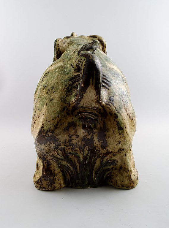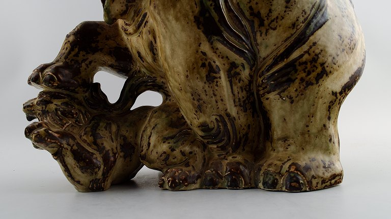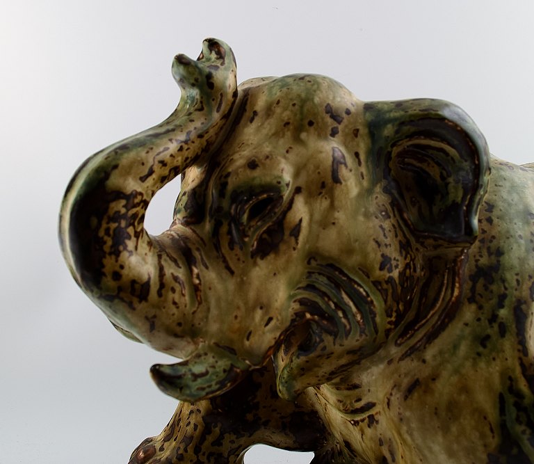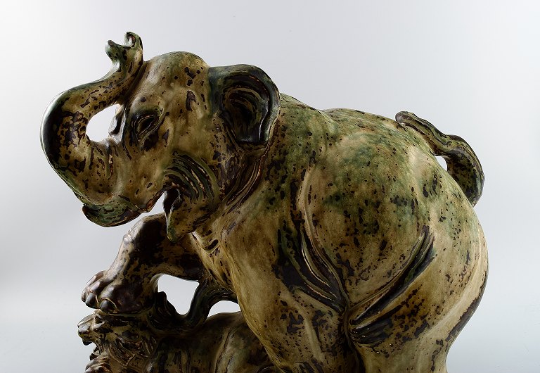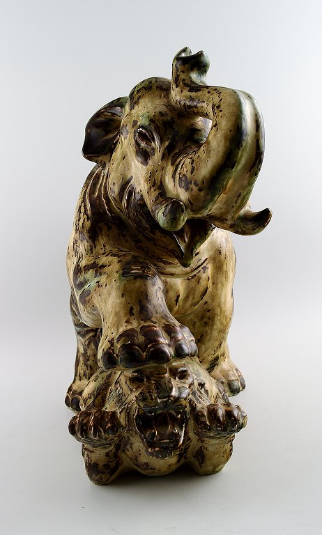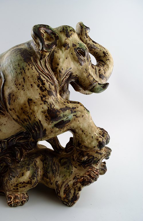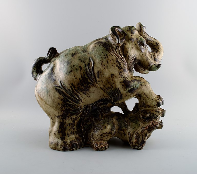 Royal Copenhagen stentøj 20165 Kgl. Elefant med tiger. Designet af Knud Kyhn. Måler 36 x 40 cm. I perfekt stand. 1. sortering.