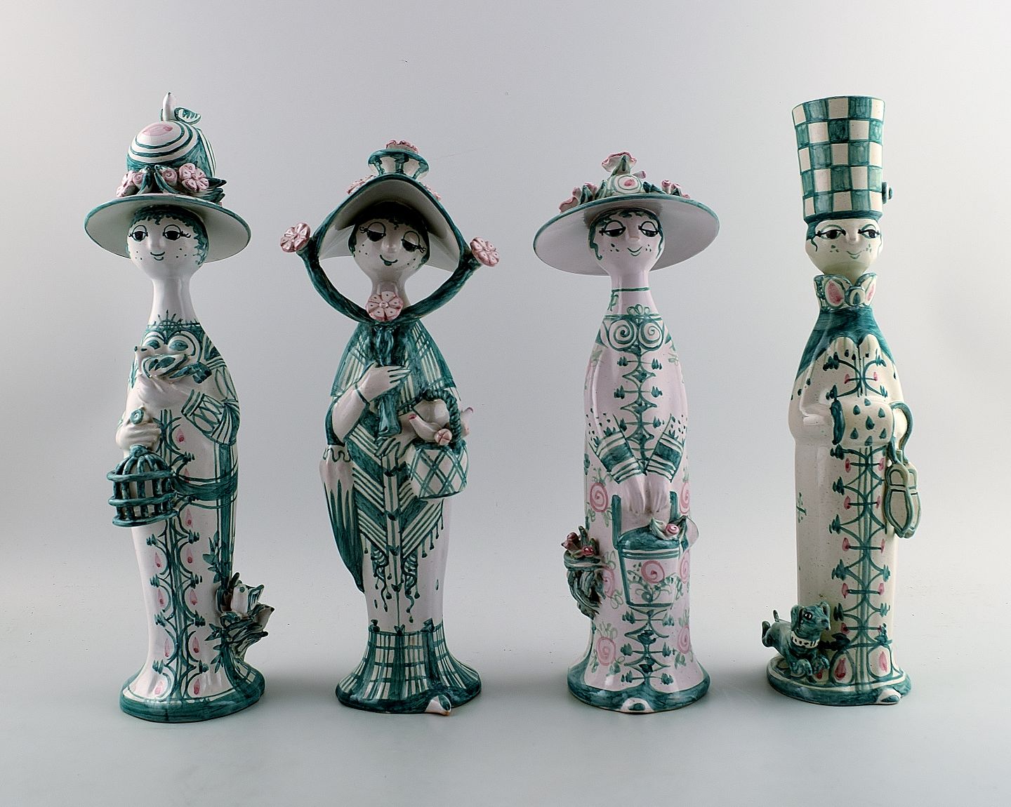 Bjørn Wiinblad 1918-2006. 'The four Seasons'. Four rare season figures in pottery, decorated in green. All season figures available in blue as well. Height: 32-36 cm. In perfect condition.