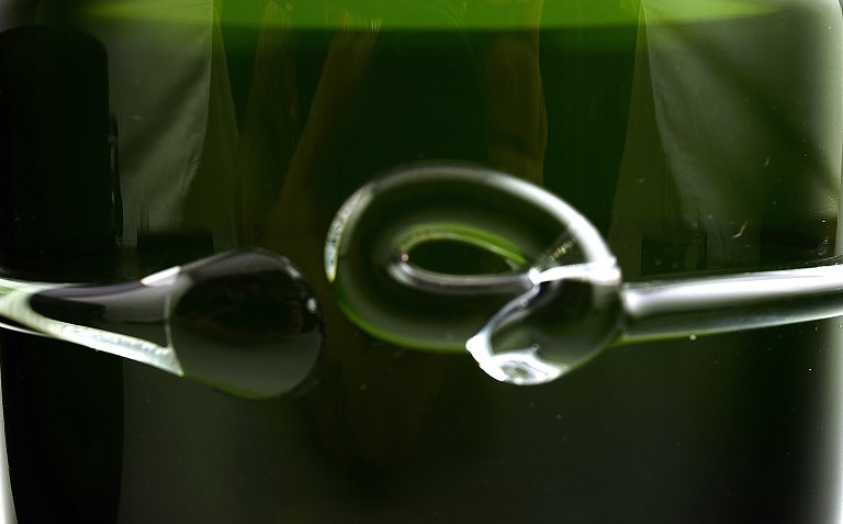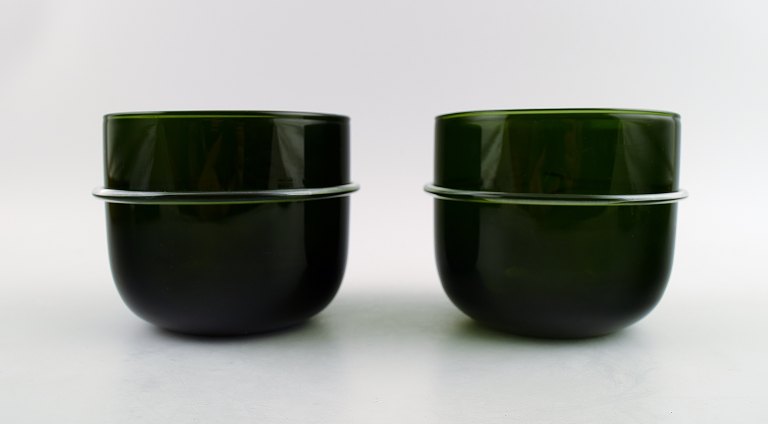 A pair Michael Bang, Holmegaard, 1981. "MB" form flowerpots, transparent jade green. Measures 10 cm. x 11.5 cm. In good condition, minor wear. Stamped: Hg and mb.