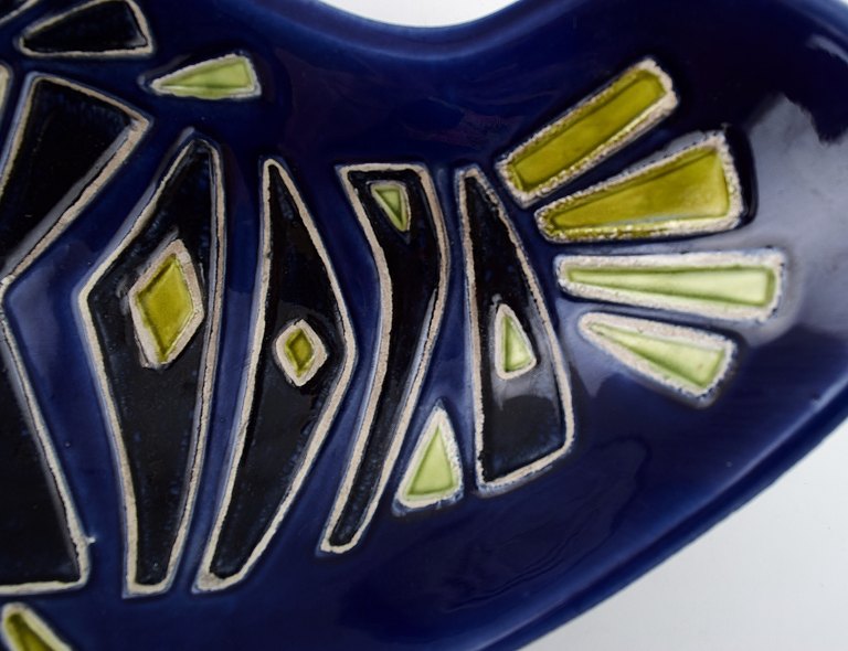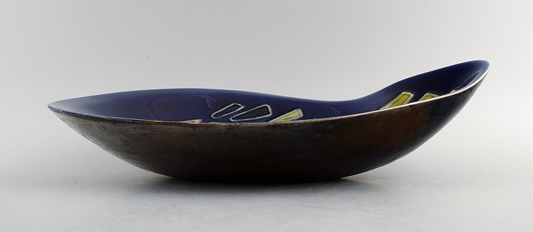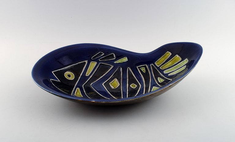 Carl-Harry Stalhane for Rorstrand, large ceramic bowl decorated with a fish. 60s. Measures 34 x 21 cm. In perfect condition. 1st. factory quality. Marked.
