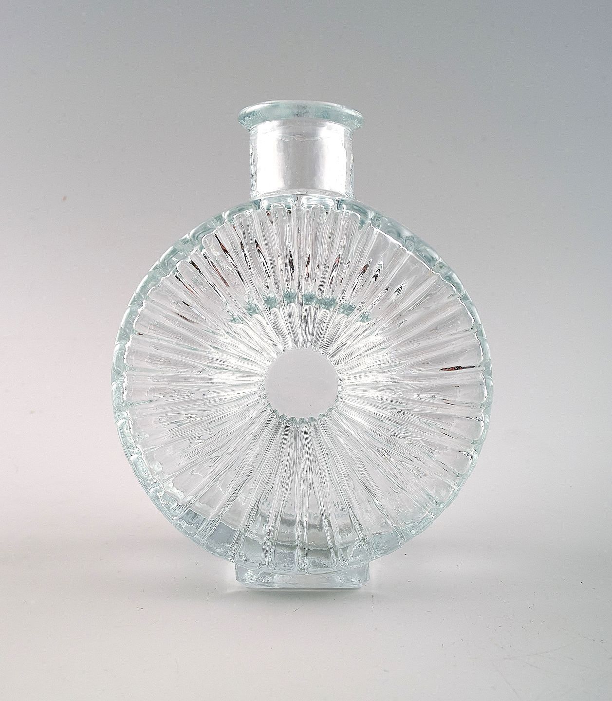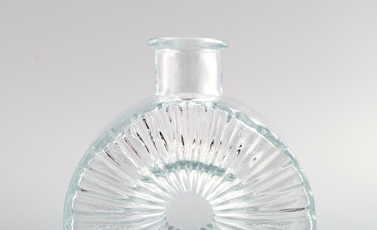 HELENA TYNELL vase/flaske i kunstglas, Solflasken, Riihimäen Lasi. Formgivet i 1964. Klart glas. Svensk design.