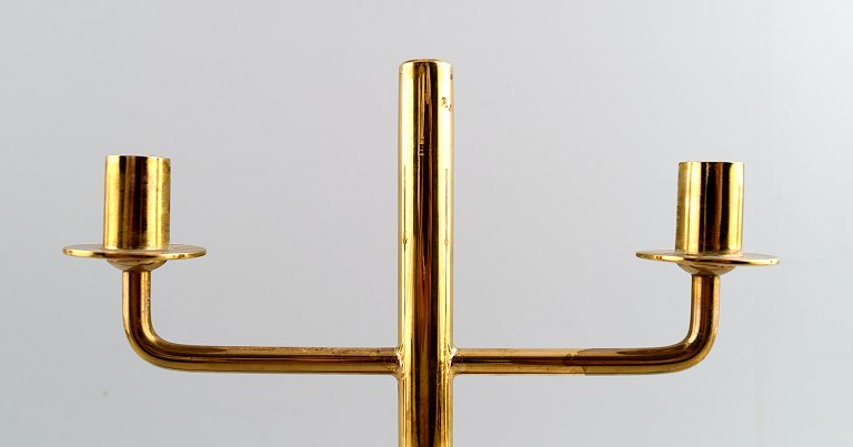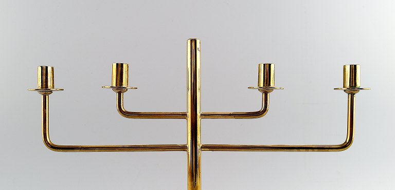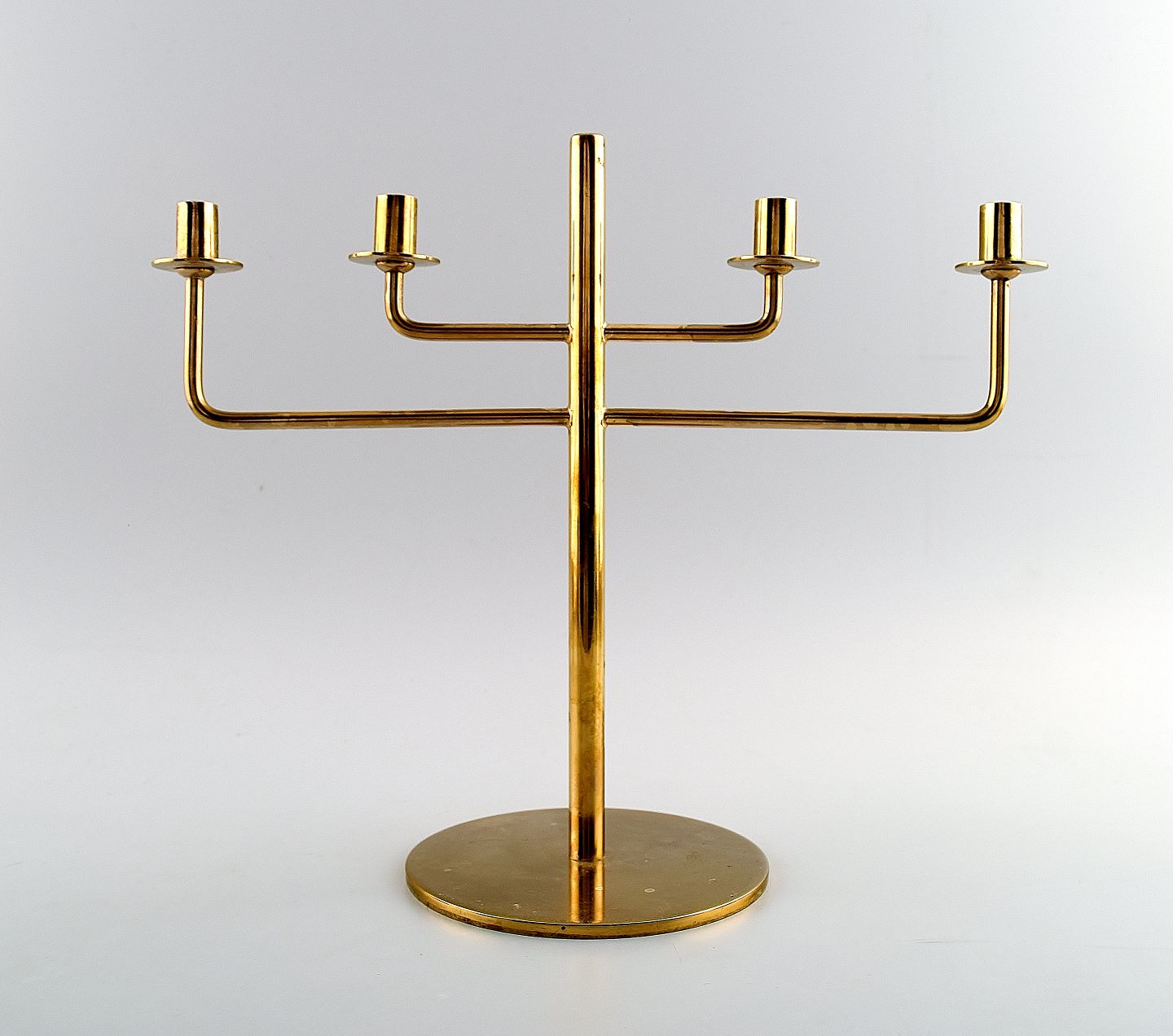 Hans Agne Jakobsson, Markaryd, Sweden, candlestick in brass. Swedish design, 1960s. In very good condition. Fine patina. Stamped. Measures 28 x 25 cm.