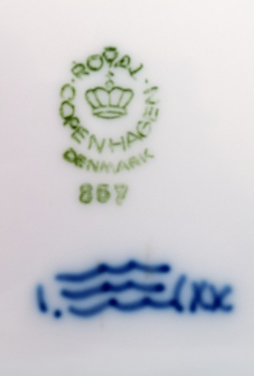 Royal Copenhagen bladformet musselmalet kagefad, nr. 867. Måler 22,5 x 17 x 4 cm. 1. sortering. I perfekt stand.