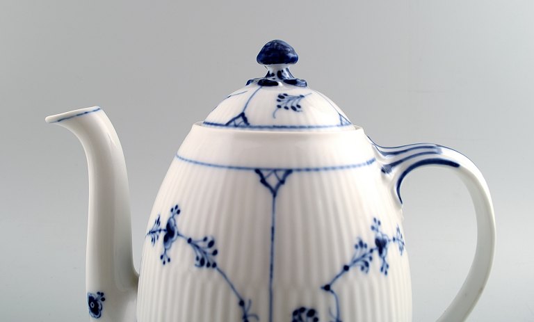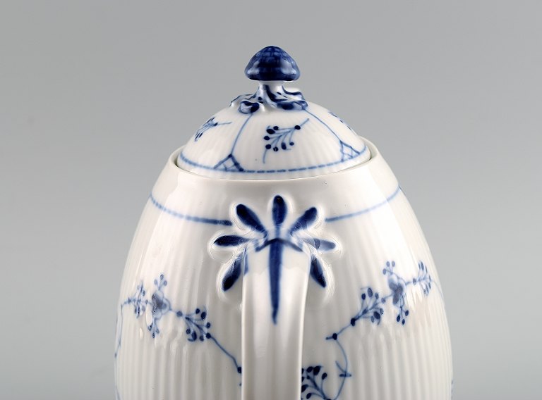 Royal Copenhagen Blue Fluted Plain, rare coffee / chocolate pot. No. 375. Height 20 cm. 18 cm. wide. Produced between 1905-1923. In perfect condition. 1st. factory quality.