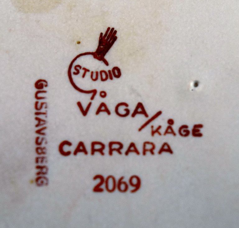 Wilhelm Kage/Kaage, Gustavsberg studio hand, "Carrara" large ceramic bowl. Swedish design. Measures 25 x 20.5 x 8.5 cm. In perfect condition.