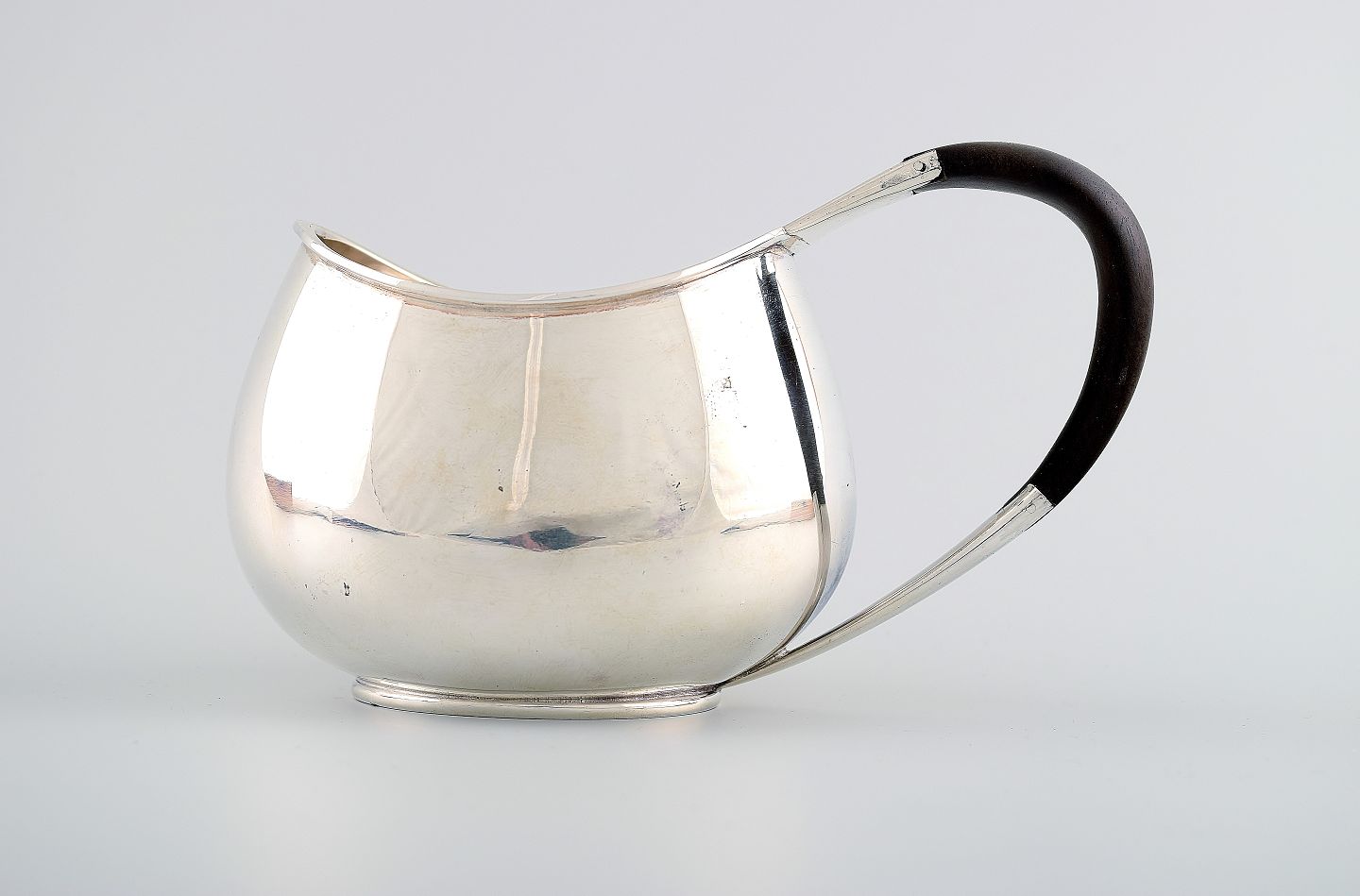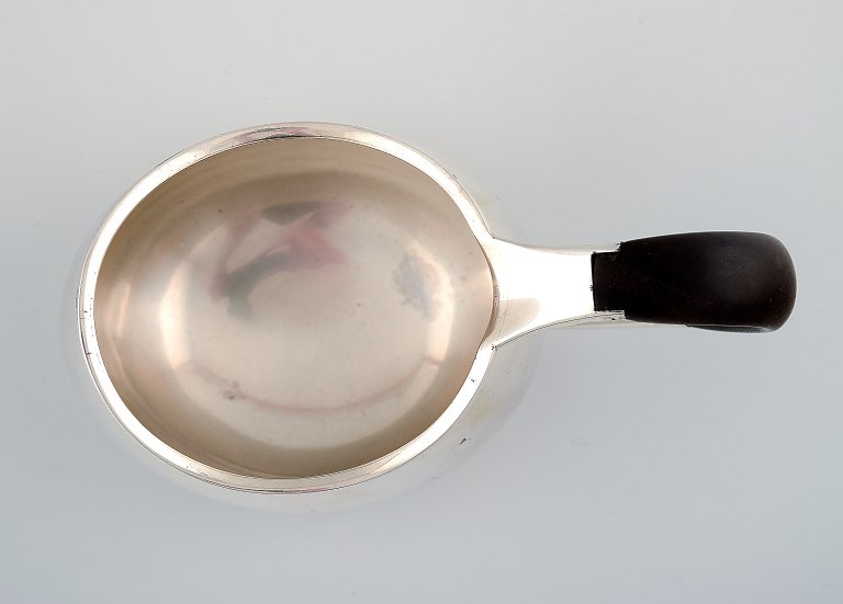 Hingelberg, Aarhus sterlingsølv sovsekande med hank i ibenholt. Dansk design, ca. 1960. Stemplet. Måler 16 x 9,5 cm. Vægt 315 gram. I perfekt stand.