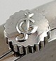 Spejlskive med sølvgrå visere. Integreret lænke af stål.