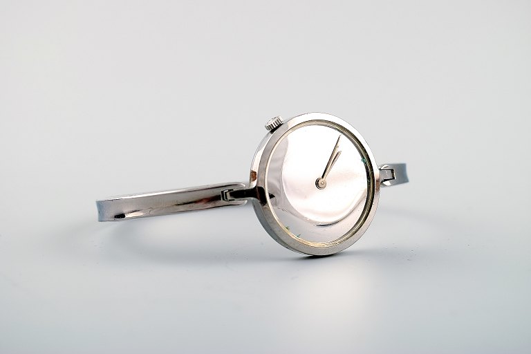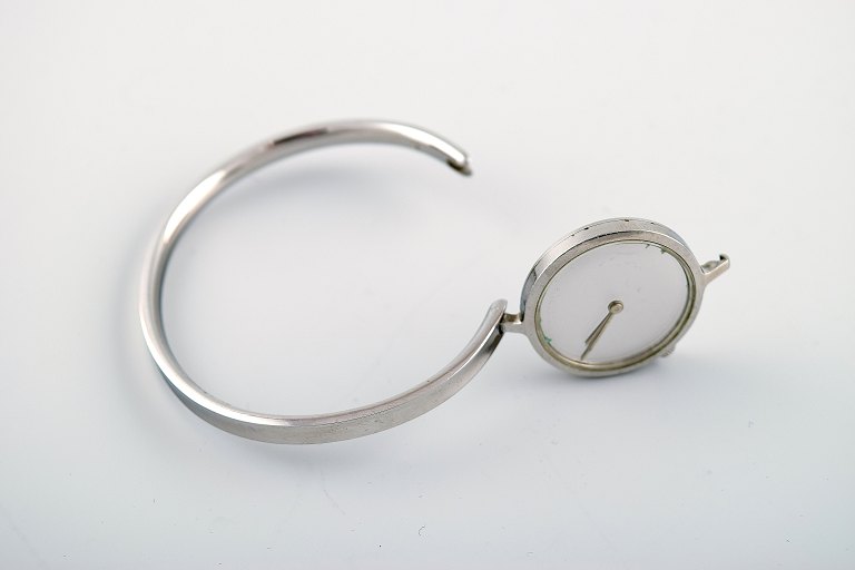 Georg Jensen/Vivianna Torun Bülow-Hübe:Georg Jensen/Damearmbåndsur af stål. Mekanisk værk med manuelt optræk. 1980'erne.