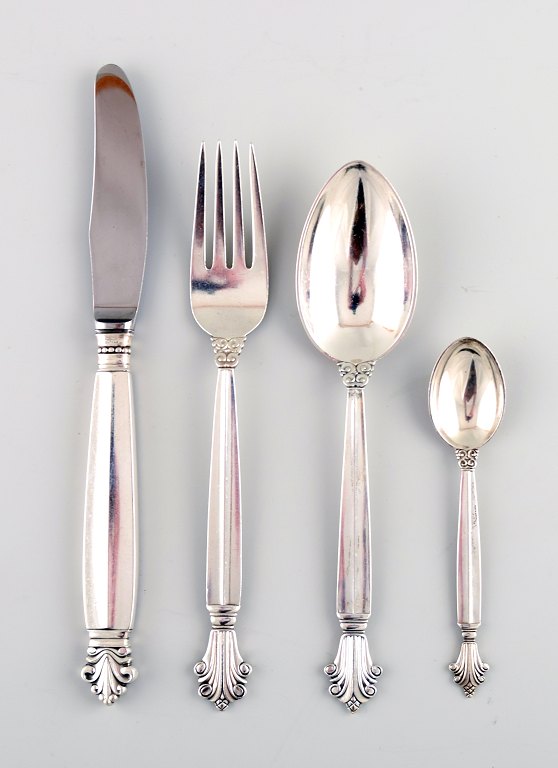 Georg Jensen Sterlingsølv 'Dronning' Bestik. Komplet Frokostservice, 28 dele til 6 pers.