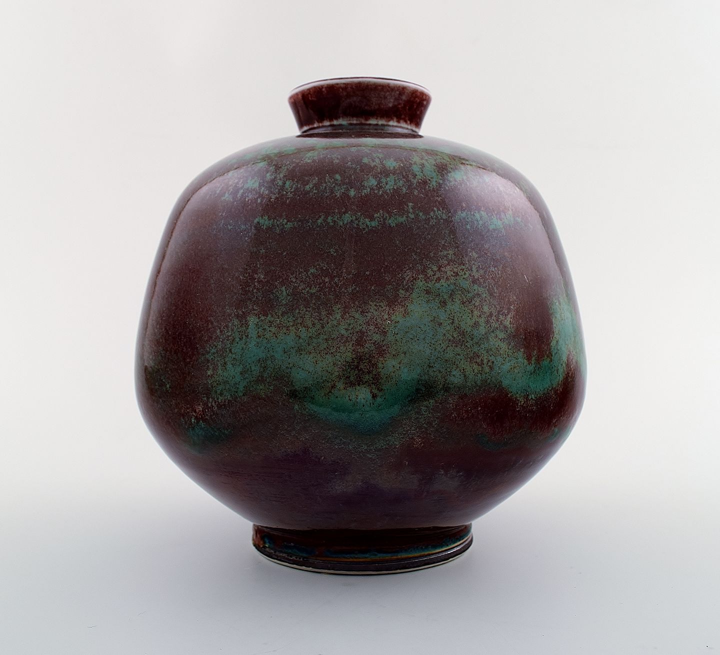 Large Berndt Friberg Studio art pottery vase. Unique, handmade. Amazing Aniara glaze. 1972. Perfect. 1st. factory quality. Measures: 21 x 17 cm.