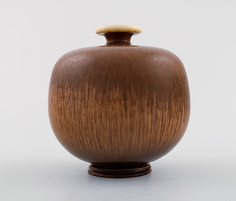 Berndt Friberg Studio keramik vase. Moderne svensk design. Unika, håndlavet. Fantastisk glasur i brune nuancer! Perfekt. 1. sortering. Signeret. Måler : 9 x 10 cm.
