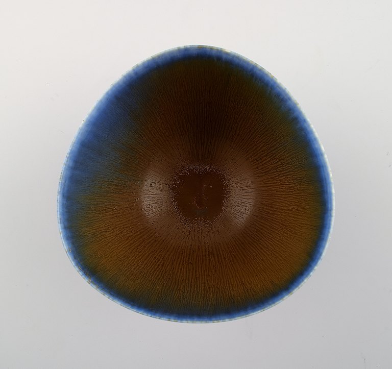 Berndt Friberg (1899-1981), Gustavsberg Studio Hand Ceramic Bowl, beautiful glaze in shades of blue and brown. Stamped. Measures: 11,5 x 7,5 cm. In perfect condition.