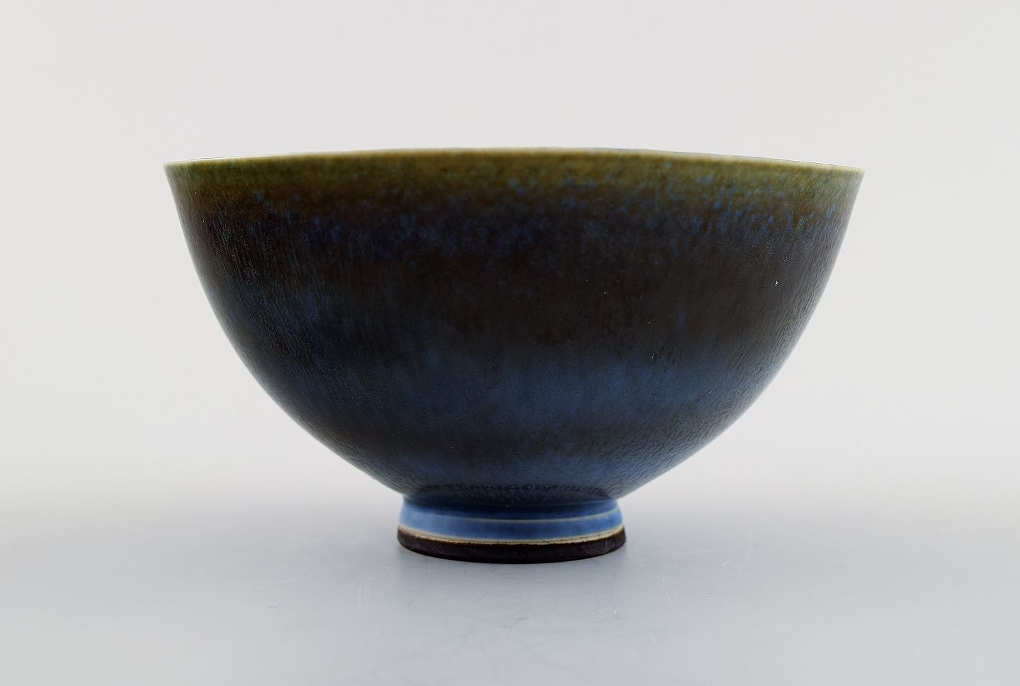 Berndt Friberg (1899-1981), Gustavsberg Studiohand Keramikskål, smuk glasur i blågrønne nuancer. Stemplet med Ä =1957. Måler: 11 x 6,5 cm. I perfekt stand.